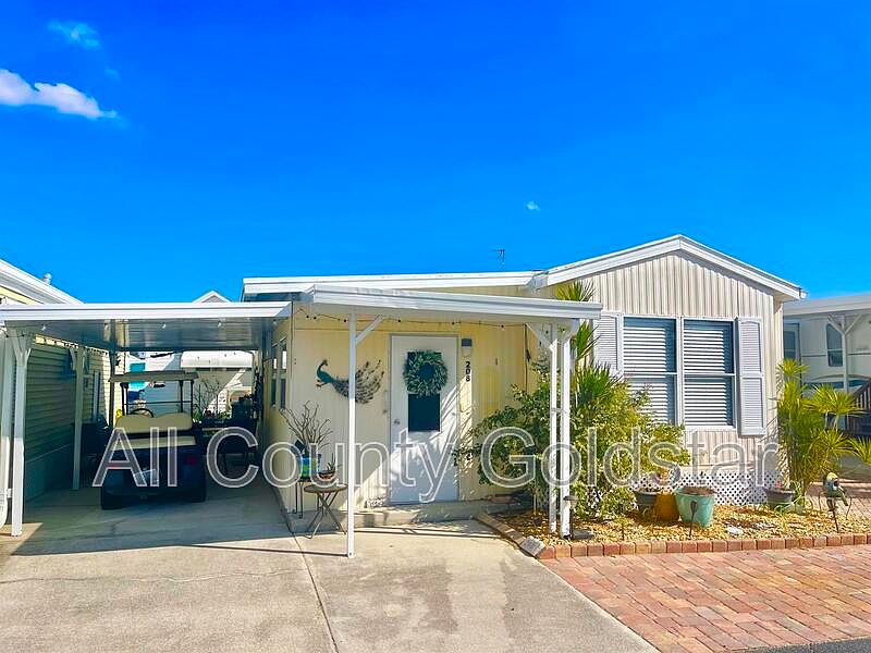Fully furnished 1-bedroom, 1-bath home with an enclosed Florida Room with additional bed in Holiday Travel Park! Filled with natural light from multiple windows, this charming home features ceramic tile in the Florida Room and LVP flooring in the living and bedroom areas. The kitchen is equipped with a cooktop stove, oven, refrigerator, microwave, and plenty of cabinet space. Holiday Travel Park offers resort-style amenities, including a community pool, clubhouse, indoor pickleball court, shuffleboard, pool tables, and on-site laundry facilities. Join in on weekly social events like karaoke, dancing, comedy nights, and coffee chats with a warm and welcoming community. A perfect mix of comfort, convenience, and fun in a vibrant setting!