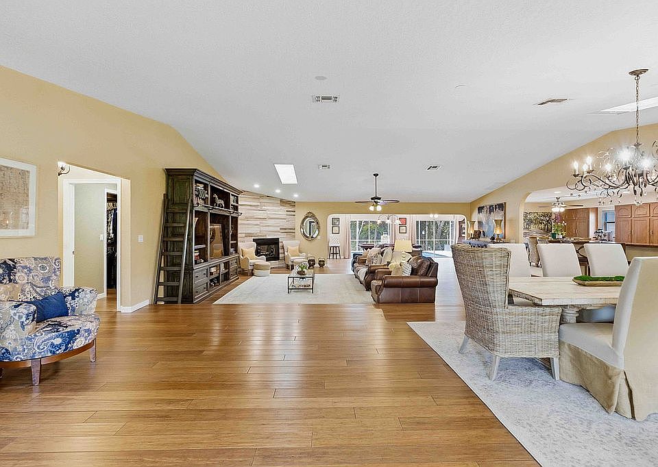 Escape to paradise right in Spring Hill. Prepare to be amazed by this 4 bedroom, 4 full bathroom, 2 1/2 car garage POOL HOME situated on just OVER ONE ACRE with a DETACHED 1200 SF GARAGE. When you arrive at this home boasting OVER 5,000 SF under roof of the main home, you will fall in love with the mature landscaping and curb appeal of the property. The walkway to the grand double front door entrance is blooming with Hydrangea and other mature flowering plants. When you enter into the breathtaking living areas including cathedral ceilings and hardwood flooring you will immediately notice the open and grand feeling of having the foyer, dining area, kitchen, living room and game room all open to one another making this home PERFECT for entertaining. The formal dining room is large enough for a 16 person table and is located just off of the kitchen. Just beyond is the spacious living room measuring 29' by 22' with soaring ceilings and a GAS BURNING FIREPLACE that is the perfect spot to cozy up to in the winter months. Tucked away behind the formal space is a massive 36' x 11' game room that would be a great spot for your bar and pool table. You will find a full bathroom right of off the game room. The chef's kitchen includes a convection wall oven, cooktop, wine cooler, a spacious island with Quartz countertops plus a butcher block counter top on the breakfast bar. A cozy dinette space with large pantries for additional storage is located just off of the kitchen. The primary bedroom is huge measuring 21' x 15' and includes a walk-in closet plus private bathroom with double sinks, a walk-in shower with 8 jet shower head. Fell like relaxing? Then you can enjoy the private soaking tub tucked away in the primary bathroom. This split floorplan places the three guest bedrooms and remodeled guest bathroom complete with marble floors on the opposite side of the home. Just off of the primary bedroom is an oversized laundry/mudroom complete with storage bench PLUS ANOTHER FULL BATHROOM complete with a custom built vanity built in Mexico. The attached garage allows for two cars PLUS additional space for a workshop or recreational vehicle storage AND has a climate controlled storage closet. Need more space? This property has a massive 1,200 SF detached garage with two roll up doors in the front plus a rear roll up door and is 12' tall which would be large enough to hold an RV and is complete with electricity. Now for the fun part... the backyard oasis. To start you have an oversized in-ground pool with screen enclosed lanai. Then there is newer 116 jet hot tub on an open air deck complete with an outdoor shower with hot and cold water. You can not enjoy the outdoors without your FULL outdoor kitchen with grill located in the sunroom just off of the game room and primary bedroom. The FULLY FENCED full acre of property gives you endless possibilities and the no-build area behind the home offers ultimate privacy. In the backyard, you will also find raised bed gardens, an additional storage shed, a fountain plus an outdoor fireplace complete with paver decking. The sprinkler system with irrigation well make caring for this property easy and inexpensive. Fresh paint inside and out, dual pane windows, central vacuum system, and a whole house fan complete this home. Dual zone AC system was replaced in 2015. NEW ROOF 2018. This property is located very close to the Parkway making it just 45 minutes to Tampa.