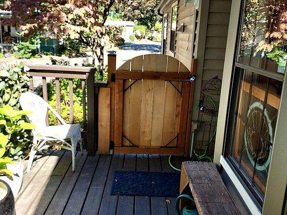 Welcome to the well maintained 1987 manufactured home offering 3 bedrooms & 2 bathrooms in a peaceful 55+ park. Home is located on a large corner lot in a quiet setting in the park. Step inside to discover vaulted ceilings, skylights and an open floor plan filled with natural light. The spacious kitchen features an island, ample storage and includes all the appliances. This home is perfect for everyday living and entertaining. Comfort upgrades include ductless heat pump, newer furnace & water heater, keeping you cozy year-round with energy efficiency in mind. Additional recent upgrades were kitchen & bathroom faucets and new toilets. The large primary suite includes generous closet space, garden tub & walk-in shower. Another unique feature are the speakers throughout the home currently connected to an AM/FM sound system. Additional enjoy outdoor living on the welcoming front porch deck or the covered back deck ideal for relaxing. Leaf guard cover on front gutters. The new fully fenced yard offers peace of security plus a low maintenance yard and plenty of outside storage. Space rent includes water, sewer, garbage road maintenance, park amenities(i.e. pool, hot tub, library, meeting room and a post office) making this home both comfortable and affordable. A wonderful place to call home.