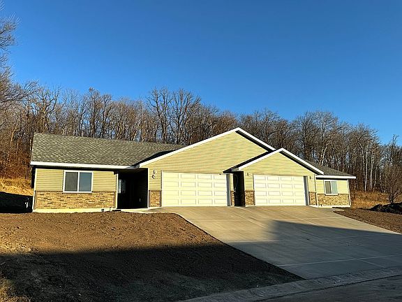 Brand new twin home! Luxury vinyl plank through out. Tiled master bathroom and shower with double sinks. Custom cabinetry in the kitchen and bathrooms. LG kitchen appliances. Master suite and 2 additional bedrooms. Big double finished garage with epoxy floor. In floor heat, on demand hot water, natural gas. City water and sewer. 12x12 back patio to be poured in the spring along with the yard being seeded and landscaping around the unit.