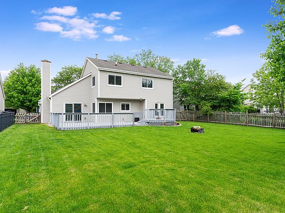 Wow! The first floor features newer hardwood flooring and an updated kitchen with granite countertops, stainless steel appliances, and a pantry closet, all seamlessly flowing into the family room. The family room offers a cathedral ceiling, a cozy fireplace, and a sliding glass door leading to a spacious two-tiered deck. Upstairs, the primary suite includes a large walk-in closet and an ensuite bathroom with a dual vanity and a separate water closet/shower area. The two additional bedrooms share a hall bath. The large fenced yard is perfect for outdoor enjoyment. Do yourself a favor and schedule your showing today!