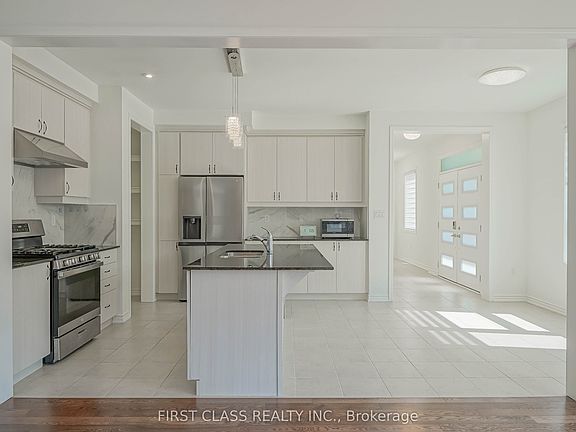 Welcome to Brand New Mattamy built Detached Home! Double car Garage and Bright premium corner lot! It is just across a street from a peaceful park, where is the summer, lush green trees surround a beautiful lake.Open concept featuring layout, 9Ft Ceiling On Ground Floor.Lots Of Upgrades for Kitchen , Hardwood Floorings and Extra bathroom on second floor.Central Island in Kitchen Primary Bedroom with huge windows and walk-in closet. Laundry in second floor,A lot of windows in Whole House. Side door direct from Garage to the house. Located Minutes from hospital, shopping, dining, schools. Convenient transportation to Many Highways (401/407/412), Pickering Go Train Station. Extra: Lot size Measurements in Geowarehouse:75.53 ft x 5.13 ft x 5.13 ft x 5.13 ft x 5.13 ft x 5.13 ft x 24.37 ft x 91.95 ft x 40.82 ft.Brokerage Remarks