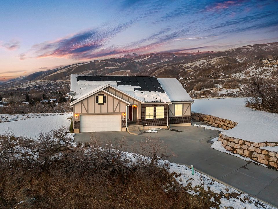 Stunning 6-bedroom, 3-bath home on Bountiful's coveted East Bench, built in 2016 and designed to showcase sweeping valley and mountain views. Light-filled, open-concept living, quaint finishes, and spacious bedroom suites create a modern luxury feel. Solar panels add energy efficiency and long-term savings. Enjoy serene outdoor spaces, a 2-car garage, and an unbeatable location near trails and amenities. A rare opportunity with unmatched scenery.