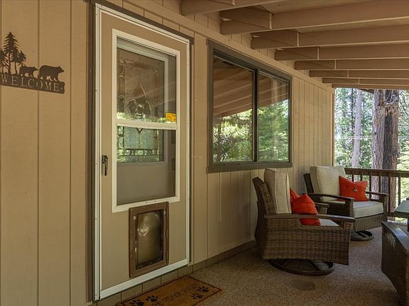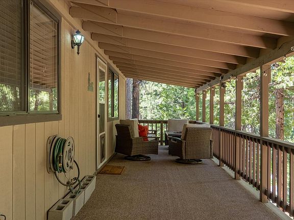 Charming Cabin Retreat in Blue Lake Springs - Backing to State Land! Tucked away in a peaceful section of Blue Lake Springs and bordering state-owned forest land, this mountain cabin offers privacy, comfort, and everything you need for the perfect escape. Step inside to a spacious living room with vaulted ceilings, luxury vinyl plank flooring, and a cozy gas log stove that keeps things warm year-round. The open layout connects seamlessly to the dining area and kitchen ideal for entertaining. The kitchen features a double oven and great flow for cooking and conversation. Outside, enjoy summer evenings on the covered porch or relax in the sitting area surrounded by towering pines. There's plenty of room for parking with both an attached garage and a carport. Downstairs, you'll find a 370 sq. ft. bonus room perfect for a game room, kids' hangout, or guest space. (Note: this area is included in the total square footage but was not permitted.) The home includes well-sized bedrooms, with the primary suite located at the end of the hallway for added privacy. A second full bathroom is centrally located for guests. This is your chance to own a special cabin in Arnold's most desirable HOA community. Don't miss it.