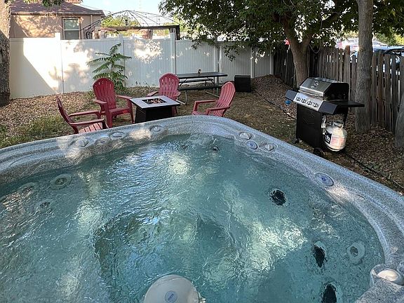 Backyard: Step into the private backyard for ultimate relaxation. Enjoy a 5-seater hot tub, a dining area for outdoor meals, a gas grill for barbecues, and soft outdoor lighting to set the perfect mood. The privacy fence ensures your group can unwind in peace.