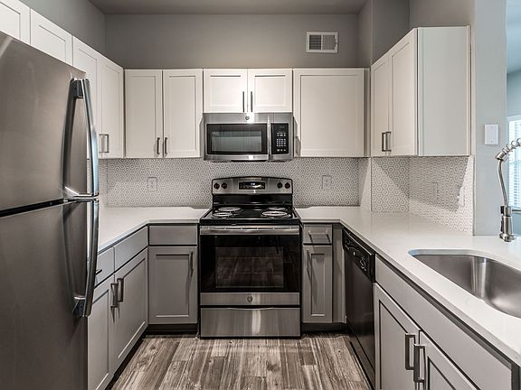 - Exterior features: 6 Panel Doors, 6 inch baseboards, Barbecue, Black Appliances, Brushed Nickel Hardware, Built-In Computer Desk, Ceramic tile backsplash, Espresso Cabinets, Garages, On Call Emergency Maintenance, Outdoor TV Wall, Package Receiving, Pet Park, Quartz Countertops, Smart Home System, Spruce Lifestyle Services, Stainless steel appliances, TV Lounge, USB Port, Undermount Sink, White/Gray Cabinet Combo, Wood Style Flooring Throughout