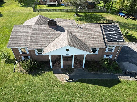 Charming brick home featuring 3 bedrooms, 2.5 baths, located in an established family friendly neighborhood. There is a community pool, for summer fun. This spacious home features a large den, kitchen, with ample cabinetry, modern updated appliances, formal living and dining room, spacious sunroom, newer hardwood. 2 Fireplaces, 1 on main level and 1 in the basement along with a quaint gas fired stove, basement served as a hair salon, so there is water available for a wet bar, there is a half bath and a small kitchenette in the basement. The long garage can accommodate several cars if placed end to end. There are recently installed solar panels, lowering electric costs dramatically. There is a shower off the mudroom.