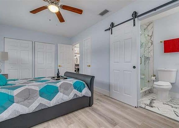 3 BEDROOM/ 2 BATH/ 2CG, POOL RESIDENCE, PACKED WITH LUXURIES in the highly sought after neighborhood of Douglas Manor Park. This home features an open floor plan concept, a large living room-dining-family room-kitchen combo, finished with a new, beautiful, contemporary, water-resistant engineered wood floor and attention taking wood-burning fireplace and a family room with soaring, uncovered beams cathedral ceiling. The newly renovated kitchen is spectacular, very spacious and well lit with an abundance of quartz countertops, fancy gold plated marble mosaic backsplash, all new soft-close, shaker hardwood cabinets. The house features a generous, split floor plan master suite, with his and hers closets and a stylish en-suite bath with a contemporary barn door, vessel sink vanity and a wall-glass shower. Both baths are totally renovated with high-end quality finishes and accessories. Everything is newer including the AC system, dimensional shingle Roof, double pane windows, garage door and opener. All-new interior two-panel doors, new LED lighting accessories, and ceiling fans, new interior knock-down texture, new sod and landscaping on the entire yard and list goes on...A glass sliding door leading you to the beautiful in-ground Pool area, with an inviting jacuzzi. That's a great place where you can just relax or entertain your all your desired gatherings. Plenty of parking for vehicles & all the company you'll be entertaining too! Centrally located in Clearwater, it is a Commuter's delight, you're just minutes from the world's famous Clearwater Beach. Walk two blocks to Allen's Creek Park with a playground, bike just over a mile to Eagle Lake Park, a 163 acre nature preserve with miles of hiking and walking trails. Close to shopping, restaurants, upscale night-life, and all the entertainment you'll ever need! ! A perfect home, in the perfect location that offers the BEST of Clearwater living at its finest! ALL YOU NEED TO DO IS MOVE IN AND ENJOY IT.