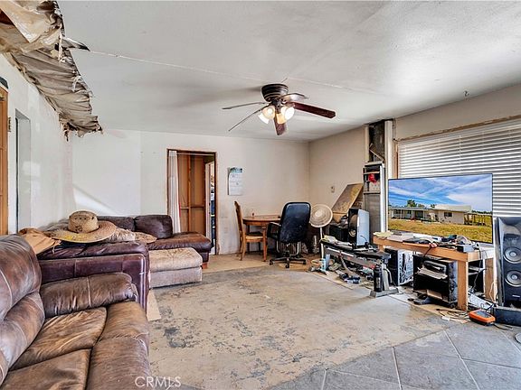 This great 3 bedroom, 2 bath home in the peaceful Flamingo Heights area of Yucca Valley is set on nearly 2 1/4 acres of land! This property is ripe and ready for someone with creative vision to breathe new life into it - could that person be you? As you approach the home from easily accessible Wamego Trail, take in the panoramic views that surround you here, stretching from the volcanic mesas of Sand to Snow National Monument across to famous Goat Mountain. The home's covered front porch invites you to kick back and relax, taking it all in. Step inside the home to find a spacious living room with large banks of windows to let in plenty of light and views, and a massive rustic stonework fireplace that divides the living and dining areas. In the kitchen and dining room, you'll enjoy lots of wooden cabinetry for storage, and inviting wooden tongue-and-groove finishes on the ceiling. You'll find the first and second bedrooms to be nicely sized with plenty of closet space, while the conveniently located guest bath features a tiled walk-in tub/shower combo for all your needs. The primary bedroom and bath are currently unfinished but with great bones. The primary bedroom is large with lots of windows for plenty of natural light, while the bathroom area is also generously sized and has a shower. Imagine what this space could be with a little TLC and your own personal choices of the latest finishes! The home also features a workshop, and an attached garage that is currently finished as an indoor gardening area. Meanwhile, on the property you'll also find a storage shed, friendly resident Joshua trees, and plenty more space to transform this diamond-in-the-rough into the desert getaway of your dreams. There are fewer and fewer homes in the area that haven't been remodeled yet - book a showing today to claim this one for your own!