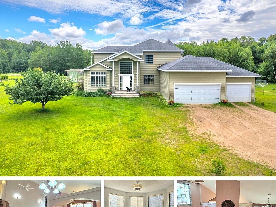 RECENT UPDATES: NEW FLOORING/PAINT/CARPET “The Castle Home” Just Minutes from Detroit Lakes. Step into timeless character and exceptional living in this one-of-a-kind estate situated on 7 level, wooded acres just four miles from Hwy 10. This extraordinary two-story home spans over 4,700 sq ft and features 4–5 bedrooms, 3.5 baths, and offers the perfect blend of space, seclusion, and convenience. From the moment you enter the grand two-story foyer, you’ll be welcomed by soaring vaulted ceilings, an abundance of natural light, expansive windows, and rich maple flooring throughout. At the heart of the home is a spacious kitchen with generous cabinetry, a pantry, stainless steel appliances, and sliding glass doors that lead to a 12' x 20' deck with pergola—ideal for entertaining or peaceful moments outdoors. The formal dining room flows seamlessly into a cozy, light-filled den, perfect for after dinner relaxation. The main level w/new LVP flooring also features a spacious office, laundry room, and multiple storage areas for practical everyday living. Upstairs, you’ll find two bedrooms and a full bath, plus a truly royal master suite stretching over 800 sq ft. Enjoy a private sitting room with deck access, a spa-inspired ensuite with jetted tub, and a breathtaking glass-surrounded sleeping area where you can wake up to views of nature and serenity each morning. The full 2200sqft walkout basement offers incredible potential, with a finished bedroom (w/egress), full bath, 2nd set washer/dryer hookups, bonus rooms, utility room, and a large family room ready for your personal touch. This remarkable property has a three-stall attached garage and a 30' x 42' insulated shop—ideal for hobbies, projects, or extra storage. Don’t miss this rare opportunity to make The Castle Home your kingdom. Schedule your private showing today and start living like royalty!