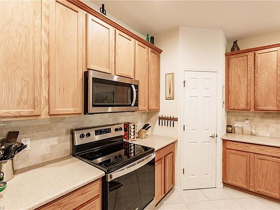 Just in time for you to enjoy this season! Original owners and pride of ownership shines through on this home. 1st floor, carriage home. Spacious 2 bed/2 bath with attached garage is ready for you to move in and enjoy a warm sunny winter. Recently installed wood-look floor in main areas. Split room floor plan allows privacy for you and your guest. Kitchen boasts stainless steel appliances with a long quartz counter/bar and beautiful backsplash overlooking the living room. Triple sliders lead you to your very private lanai overlooking the peaceful protected preserve. Seller has added a front door screen so you can enjoy a wonderful winter cross breeze! This home is conveniently located a few steps away from the community's resort style pool and activities. Calusa Palms is a gated community with very strong financial reserves and low fees that include insurance, state of art Fiber Optic High Definition TV and Internet, trash removal, sewer, water. Great location just a few miles to the beaches of Fort Myers and Sanibel/Captiva Islands, quality health care, shopping, dining, entertainment and the airport. Come take a look at this home and start enjoying your winters NOW!