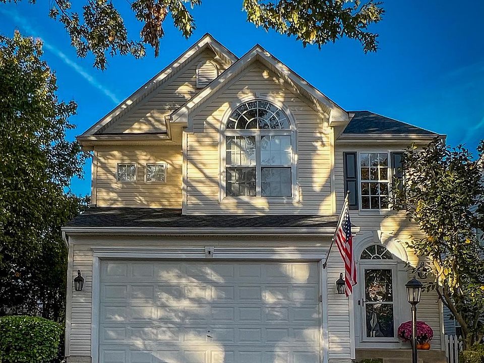 Beautifully updated 5-bedroom home tucked away on a quiet, tree-lined street. Designed for comfort and connection, this home offers inviting spaces for every stage of life. The bright two-story foyer opens to a formal dining room and a main-level office, ideal for work or study. Refinished hardwood floors lead to a spacious kitchen featuring quartz countertops, custom backsplash, stainless steel appliances, an island for gathering, and a sunny breakfast area with large picture window. The extended family room provides plenty of room for everyone to relax, complete with a cozy fireplace and access to a custom patio overlooking the fully fenced backyard—perfect for playtime or weekend barbecues. Upstairs, the generous primary suite includes a relaxing sitting area, dual closets, and a private bath with double sinks, soaking tub, and separate shower. Three additional bedrooms share a large hall bath with double sinks, and a conveniently located laundry room makes daily routines easier. The finished basement adds even more flexibility with a large recreation room, fifth bedroom, full bath, and storage space. Residents enjoy community amenities including a pool, tennis courts, three playgrounds, a nature trail, and a fishing pond. Conveniently located near shopping, dining, commuter routes, and top-rated schools, this home blends style, space, and easy living in a sought-after neighborhood.