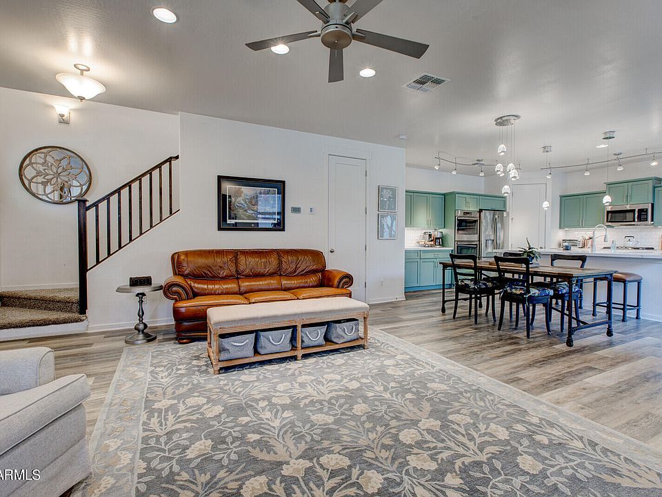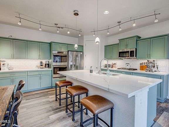 Fresh, modern, and cozy! This model home is located in popular Marley Park community, amenities such as pool, parks, meeting rooms, and more! Enjoy your morning coffee on the paved front porch or cook in the chef's kitchen...which has a huge island w/ quartz counters, refreshed cabinets, gas cooktop, double ovens, SS appliances, & pantry. The glass sliding doors draw in an abundance of soft natural light while also connecting directly to the covered patio. Large loft upstairs w/ custom wood decor wall for a separate living space. Huge master suite w/ a gorgeous bath with large walk-in shower and huge closet. Super energy efficient features include 15 SEER Trane AC system, tankless gas water heater, dual pane Low-E windows and sliders. Even the garage has AC and epoxy flooring! Must see!