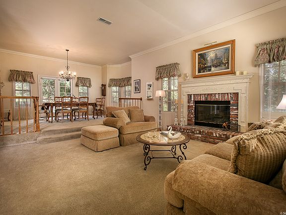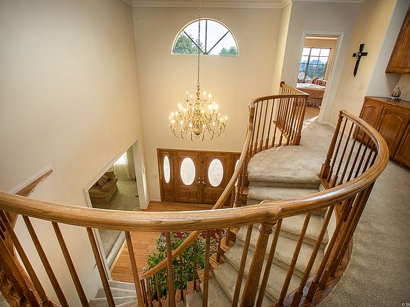 Soaring entry w/ spiral staircase welcomes you into this custom 5 BD, 4 BA, 3987 SF home in gated Cool Valley Ranch Estates. Large living room w/ FP, large dining room, large family room w/ FP, large family kitchen with island + bay window breakfast nook. 1 BD + 1 BA downstairs. 3-car att garage. Detached approx 1800 SF garage/workshop w/ 2 car roll-up and 1 RV roll-up doors. Tranquil 2 acre, oak-studded lot. Original owners. Quiet, gated neighborhood located near schools and town.
