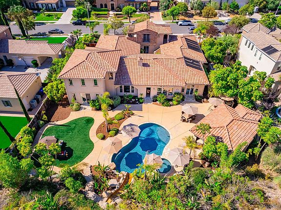 This home is a must see! Single story with a twist! Effortlessly melding elegance with functionality. A charming courtyard not only enhances the property's appeal but also grants exclusive access to two on-site casitas, offering versatility and seclusion for guests or extended family. With 6 expansive bedrooms, including 5 full baths and 2 half baths, this residence provides abundant space for the entire family. The exquisite kitchen, featuring GE Monogram appliances and a Sub Zero refrigerator, fulfills every culinary aspiration. With a 4-car garage, upgraded oversized hot water heater, advanced security system, indoor-outdoor speaker setup, and 3 efficiency zones, this property is a true custom experience. Stepping into the backyard reveals a meticulously crafted outdoor oasis, complete with insulated cabana and a thrilling 20-foot waterslide. The solar-heated pool, with dual heating options, ensures year-round comfort in style.