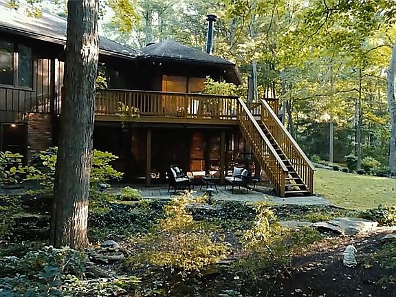 If Colorado had a vacation home in Ohio, it would be right here on Hillbrook Lane North. Tucked on just over 5 acres along the storybook Griswold Creek (a tributary of the Chagrin River) nature is your full time backdrop. Watch deer, heron, and fox from your expansive deck or screened porch below with the sound of the water as your soundtrack. While the outside is pure nature-lovers paradise, inside the ranch layout offers over 6,000 finished square feet, including a fully finished walkout lower level and complete in-law suite. Vaulted ceilings soar in the great room and crown one of the home’s most striking features: a suspended, open-sided fireplace that serves as both art and a gathering place. Anchored in stone and surrounded by walls of glass, it frames views of the deck, towering trees, and the creek beyond — making it as much a conversation piece as it is a cozy spot to linger on cool evenings. The primary suite wakes up to water views, and a brand-new roof (2025) means your next chapter starts worry-free. Main-level wrap around deck? Check. Screened porch for lazy summer nights? Double check. This home offers the kind of solid construction and thoughtful layout that’s increasingly rare and this home has been cared for with pride. Its rock-solid bones mean you can live comfortably while deciding how to make it yours. Love it as-is for its retro charm, or bring your own vision for a modern transformation to match the million-dollar estates surrounding it. Perfect location in the Chagrin Valley, this is a one-of-a-kind setting you won’t find again.