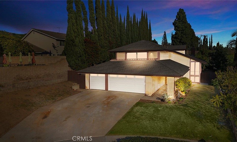 THIS HOME IS A MUST SEE! This beautiful home is located in the prestigious community of North Hills & Pleasant Hills area of Brea! It features 4 bedrooms and 3 bathrooms with 2,366 square feet of spacious living space on a 11,160 sq foot lot! Large living room at the entry with cathedral ceiling, lots of natural lighting, beautiful brick fireplace, beautiful view of the backyard and is adjacent to the formal dining room. The kitchen features plenty of cabinetry for storage, double ovens, gas cooktop, recessed lighting, counter seating and is open to the family room. The main floor also features a DOWNSTAIRS BEDROOM, BEAUTIFUL BATHROOM WITH SHOWER and Laundry Room. Upstairs showcases a LARGE Owners Suite that includes a beautiful bathroom with double sink vanity, private shower, TWO closets and your own private balcony. Two additional large secondary bedrooms and a beautiful full bathroom down the hall. The backyard is ready for your next BBQ! This private backyard features a HUGE yard with mature landscaping, fruit trees, concrete patio area. Take advantage of the Award-winning Brea Olinda Unified School District, Close to the Brea Mall, Downtown Brea, Restaurants. Come view this beautiful house and make it yours today!