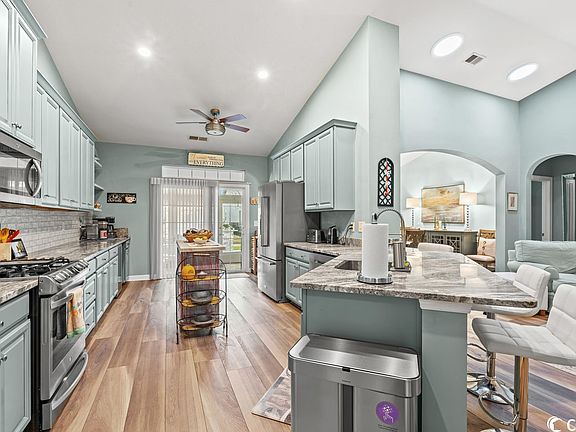 - Features: Breakfast Bar, Kitchen Island, Pantry, Stainless Steel Appliances, Solid Surface Counters