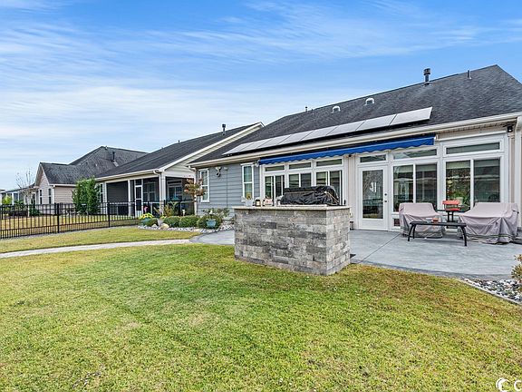 Modern Elegance and Comfort Await in this 4-Bedroom, 3-Bath Haven. Discover the epitome of modern elegance in this meticulously maintained 4-bedroom, 3-bath home with an open floor plan and a two-car garage with shelving and storage located in the popular Emmens Preserve in the Market Common district. Built in 2016, this residence boasts contemporary design, thoughtful upgrades, and a wealth of features to enhance your lifestyle. Enjoy this spacious home with 2,148 heated square feet, providing ample room for comfortable living and entertaining. With a total of over 3000 square feet, this home offers a spacious environment for both daily living and entertaining and lots of storage. The open floor plan seamlessly integrates various living spaces, creating a harmonious flow throughout the home. The 4th bedroom, located on the second level, adds versatility as a private bedroom with its own bathroom and walk-in closet. Ideal for guests, a home office, or an entertainment space, this room adapts to your evolving needs. Built in 2016, the house is only 7 years old, ensuring adherence to modern construction standards and a fresh, contemporary aesthetic. A renovated kitchen features granite countertops, stainless-steel appliances and a gas oven. Enjoy cozy nights by the gas fireplace in the living room. Step outdoors into a backyard retreat with brick pavers, an outdoor built-in barbecue with an island, hard-wired landscaping lights, French underground drains, a 4-system irrigation setup and Gutters around the house. Enjoy modern amenities such as powered Hunter Douglas window treatments in the kitchen, dining room and upstairs bedroom/bonus room, a Rinnai tankless water heater, and surveillance cameras throughout the property. The master bedroom on the first floor offers convenience and privacy, featuring a walk-in closet, storage area, an upgraded bathroom with oversized tile shower with seat, private commode and a freshly painted interior. From a 25 ft. wide, all-season sunroom located off the kitchen to a power-operated sun shutter covering the exterior patio, thoughtful upgrades enhance the living experience. Solar panels on the front, side, and rear of the house contribute to energy efficiency, while two solar tube lights in the living room provide natural illumination. Ceiling fans throughout the home will convey. This well-kept and upgraded home is not just a residence; it's a modern sanctuary designed for comfort and style. Schedule a viewing to explore the details that make this 4-bedroom, 3-bath property a contemporary haven tailored to your lifestyle. Convenience is key at Emmens Preserve with amenities that include a resort style pool, workout facility, clubhouse, outdoor kitchens, dog park, lakes, putting green, bocce ball court, fishing pavilions and breathtaking lake views. Market Common has lots of entertainment in its own little urban style village which is full of restaurants, shopping, a movie theater, bookstore, healthcare services, year-round activities and outdoor events. Enjoy the proximity to award-winning schools, airport and 2 miles to the beach. Don't miss the chance to make this exceptional property your new home. Schedule your appointment today! Square footage is approximate and the responsibility of the buyers to verify.