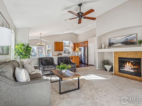 Discover the ease of main floor living in this cheerful ranch-style home! With expansive vaulted ceilings, every room is filled with natural light. The kitchen is open and bright with stainless appliances and brand new, quartz counters. The cozy gas fireplace and spacious kitchen island make it lovely for entertaining this holiday season. The finished basement offers a spacious rec room, an oversized bedroom with its own bath, and an unfinished space to allow for plenty of storage. Enjoy tranquility on the quiet lot, complete with a generous deck surrounded by beautiful, mature trees. The freshly painted interior showcases a modern touch, complimented by brand-new carpeting throughout. Walk just steps to a neighborhood park with play area and enjoy the community pool in the summer. This home is ready for a quick move-in! Come home for the holidays!