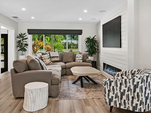 Creme de la creme! Discover the perfect fusion between mid-century architecture and modern design in this stunning 3 bed, 2 bath pool home in North River Shores. Outfitted with luxurious finishes from floor to ceiling, this home is bound to impress. From the inviting foyer, enter the chic living room with electric ''fire'' place and spacious dining area. Hinged-impact doors open to create a seamless flow to the outdoor space. The incredible kitchen has a massive quartz, waterfall-edge island with butcher-block end, Wolf gas range with Best downdraft hood, JennAir refrigerator, Uline icemaker & wine cooler. Special features: complete impact glass, tankless water heater, AC & ducts (approx 2019), mini-split AC for extra-deep garage, custom window treatments, and more! Boat ramp w/ocean acces The .46acre lot, a recently refinished, heated pool, marble pool deck, covered patio, gas tiki torches, gas firepit, and rights to the use of an ocean-access boat ramp offer the perfect retreat. Offered partially furnished.