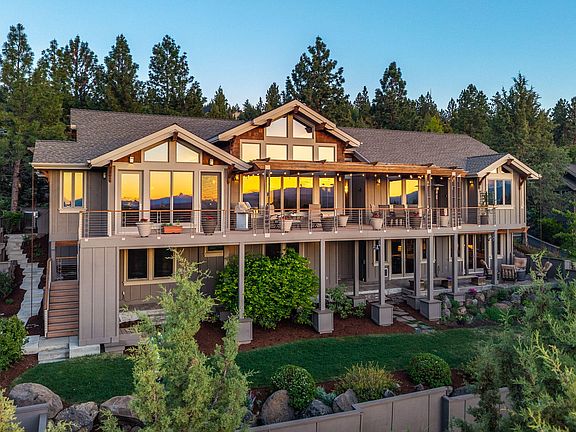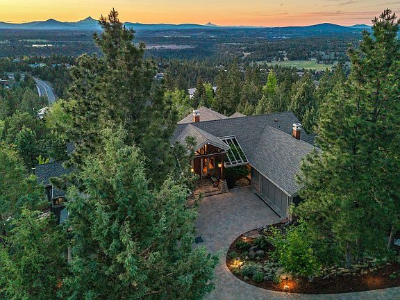 Experience breathtaking views from this extraordinary custom home, perfectly positioned to capture nine Cascade Mountain peaks through expansive west-facing windows. Located in the coveted Awbrey Butte neighborhood of NW Bend, this home offers timeless elegance and stunning scenery. Soaring 20-ft ceilings, oak hardwood floors, a masonry fireplace with reclaimed wood mantel, and architectural windows elevate the main living areas. The chef's kitchen includes Sub-Zero, Dacor, and Bosch appliances, a built-in espresso station, and slab granite. Entertain or unwind on the private view deck with a pergola and retractable sunshades. The lower level features a wet bar, an undercounter fridge, and custom concrete floors. Designed by Don Stevens and offered by the original owner, this home is a showcase of craftsmanship, comfort, and thoughtful detail. Please Note: there is a 3rd bay garage space not showing in floorplan.