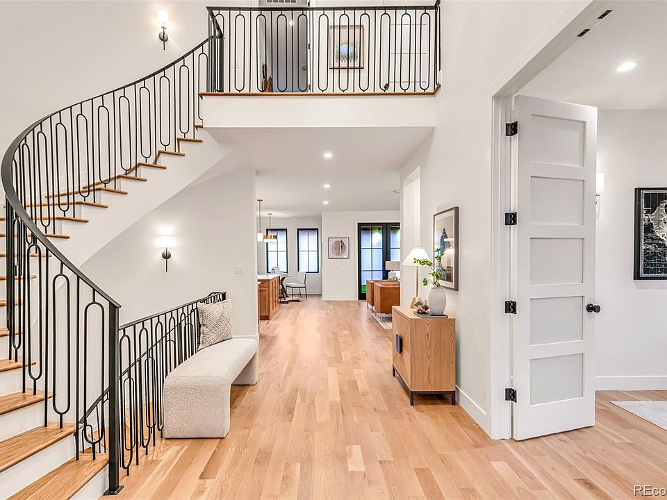 The price update you've been waiting for on this luxuriously warm, welcoming and completely stunning home. This newly built residence is thoughtfully designed and custom-crafted. A striking curved staircase anchors all three levels, introducing a sense of architectural drama. The open main level is ideal for both everyday living and entertaining, featuring a spacious great room that flows seamlessly into a gourmet chef’s kitchen and inviting outdoor living spaces. Two dedicated home offices — one on the main level and one in the finished basement — support modern living with ease. Retreat to a luxurious primary suite with a private balcony and spa-inspired bath complete with a sauna and custom Euro style closet system. A basement fitness center and media room provide additional space for recreation and wellness. Every finish, from custom wood cabinetry by Tharp Cabinetry, wide-plank, white oak flooring, to sleek quartz countertops and designer tile, reflects a warm, elevated, and refined aesthetic. Set on a quiet block just moments from Washington Park and South Gaylord Street, this location offers convenience and enduring value — wrapped in a home designed with heart. This home has an energy/ACH rating of 0.95, is all electric and extremely energy efficient. All documents and floor plans available upon request.