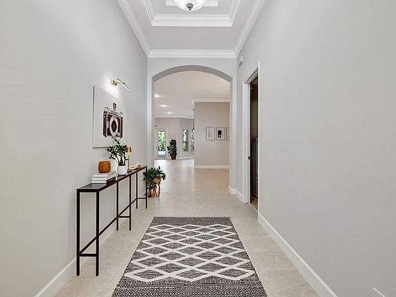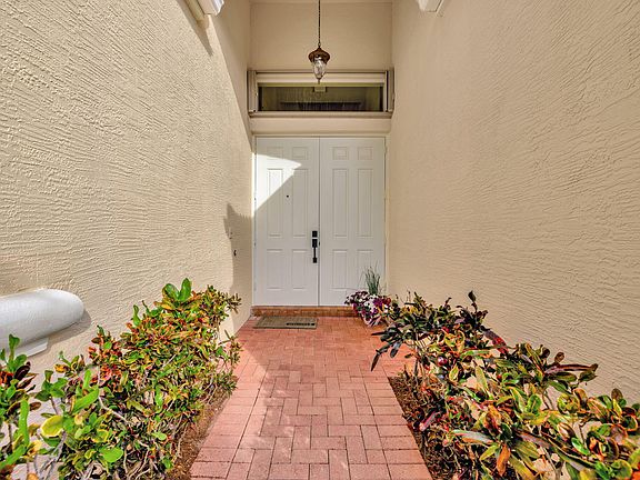 Stunning patio home home in a gated community! Light and bright floor plan, spacious rooms, and a seamless flow that enhances daily living. Coffered ceilings, and crown molding, this home is designed for comfort and style. Chef kitchen boasts high-end stainless steel appliances, and instant hot water dispenser. Kitchen and bathroom cabinets have pulled out drawers. Luxurious primary suite has a bay window, 2 walk-in closets, and French doors leading to the covered lanai. Brand new AC with 10 yrs warranty. Large backyard and custom garage has professional tool storage with a workbench. Resort-style amenities: clubhouse, pool, tennis, basketball, and fitness center. HOA fee included: Gate, Lawn care, tree trimming, cable & internet. Mins to I-95, beaches. Can rent out after closing.