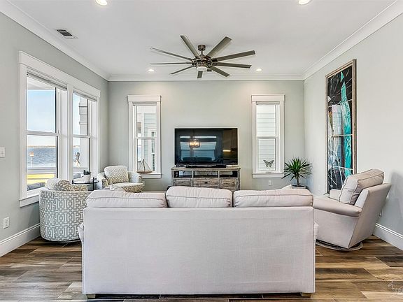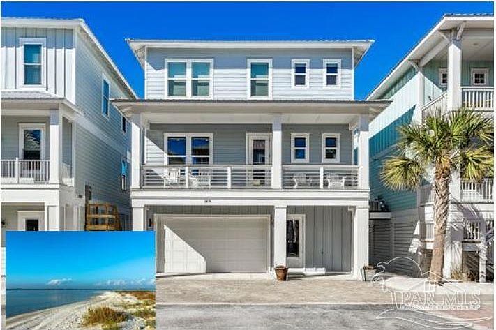 Inviting Furnished Beach Home with 3 stop Elevator. Built 2019. Refreshing views of the water and white sugar sand beach from living area and balconies on the 2nd and 3rd levels. Gated Waterfront community with Pool. Custom quality construction 4 bedroom 3 bath with Elevator has careful attention to detail and many designer finishes that include tiled plank flooring throughout, square edge custom cottage trim, tall framed windows, high 9-t to 10-ft ceilings, designer paint, heavy crown and tall eight foot doors. The cook will enjoy the well-designed open concept kitchen with tall solid wood soft close cabinets, tile backsplash, upgraded granite, wine cooler, 5 burner range with decorative stainless hood, stainless Bosch appliances and huge 6-ft island that seats 6, has many drawers, an abundance of storage, and built in island microwave. The living level also features a dining room, guest bedroom and full bath. The second level features two nice sized guest bedrooms and guest bath with double granite top vanity and tiled tub. Spacious Master suite has oversized balcony with expansive views of the Santa Rosa Sound. Luxury master bath has tall granite double vanity, unique mirrors, large floor to ceiling tiled shower with frameless glass enclosure, two customized closets, one that walks through to laundry with granite counter and laundry sink. Embrace outdoor living on the 1st level patio and deck convenient to half bath and outside shower with hot and cold water. Investment potential or Primary Residence. By the Sea is a gated Waterfront Community on the Santa Rosa Sound. Homeowners enjoy being located close to the Sound and minutes away from walk overs on the Gulf of Mexico, shopping, and restaurants. By The Sea Amenities include community pool & hot tub, community fire pit, pool bath house, deeded access to the Santa Rosa Sound and adjacent Santa Rosa County Park Land. This outstanding home offers the best in Coastal living!
