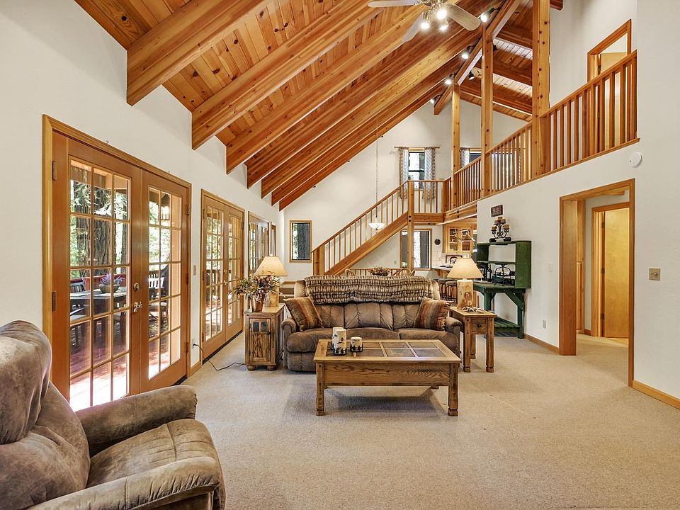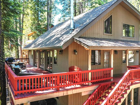 This impressive...3-story chalet in the desirable development of Big Trees Village is simply sensational! With an open floor plan, beautiful vaulted knotty pine ceiling with decorator lighting and free-standing wood burning stove which adds to the classic cabin feel. A unique design of three glass double doors that frame the great room walls bringing the outdoors within. The second level loft overlooks the great room and dining area and can also be used for additional sleeping or just a quiet refuge. Additional guest bedroom and full bath complete the upper level. The oversized rear deck overlooks the additional acreage included in the sale and provides for some well-deserved privacy. For game night, a large bonus room with pool table and sitting area also has access to the covered lower deck. Add a couple of bunk beds and you have a perfect set up that can sleep 4. There are a number of great ideas for the use of this room to make it fit your needs. For the furry family members, there is a fenced area with room to roam. A convenient attached two car garage with room to store bikes, canoes, and other outdoor toys is a must for mountain living. This cabin comes turnkey with most furniture as a bonus! Enjoy all the recreation our mountain community has to offer such as: The Arnold Rim Trail for biking and hiking, the Stanislaus River, Lake Alpine, Bear Valley ski resort, golf, wine tasting, outdoor concerts, shopping, restaurants and more. The HOA is optional with two pools, snack bar, game room, basketball, playground, tennis, and evening movie nights beneath the stars. This is where nature is the moving picture in your daily life!