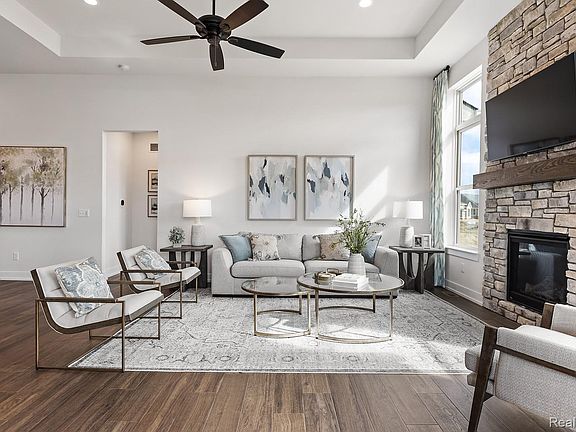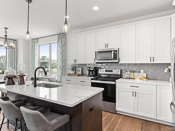 Beautiful and exquisitely crafted duplex-style condominium under construction at Cove at Benstein in Commerce Township. The Allyssa is a ranch plan, with 2 bedrooms, 2 full bathrooms, great room, kitchen, nook, and first floor laundry room. Full basement with 8'10" wall, egress window and 3-piece rough plumbing for future bath. 2-car drywalled garage. Chef's kitchen with Whirlpool appliances, including range, dishwasher and microwave. This unit features a covered deck. Painted Lafata cabinets featuring 42" uppers, lazy susan, pull out trash and crown molding. Granite countertops in kitchen and baths. Luxury vinyl plank in kitchen, nook, great room, foyer, mudroom. Upgraded carpet in bedrooms and loft. 10 year limited structural warranty. Photos are of similar condo.