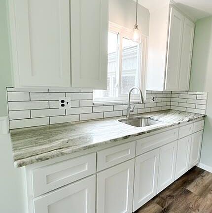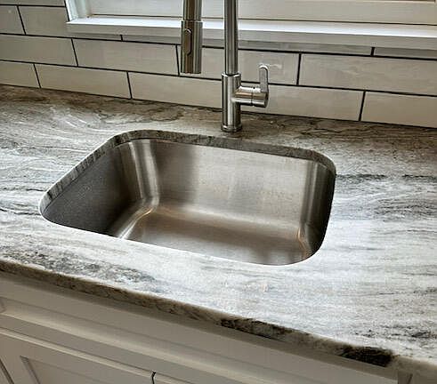 Stunning Kitchen with lots of natural light, white shaker cabinets, and gorgeous quartzite counters.