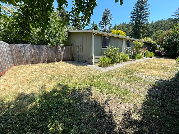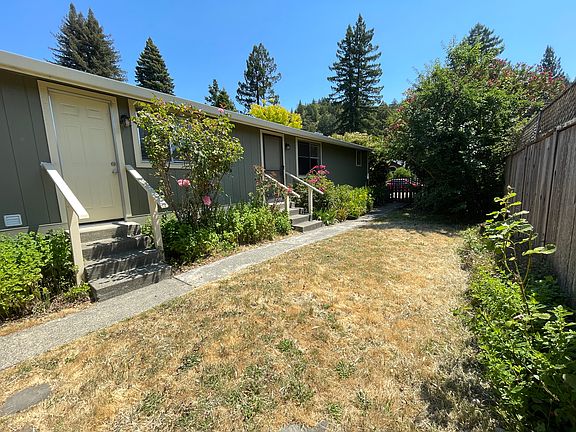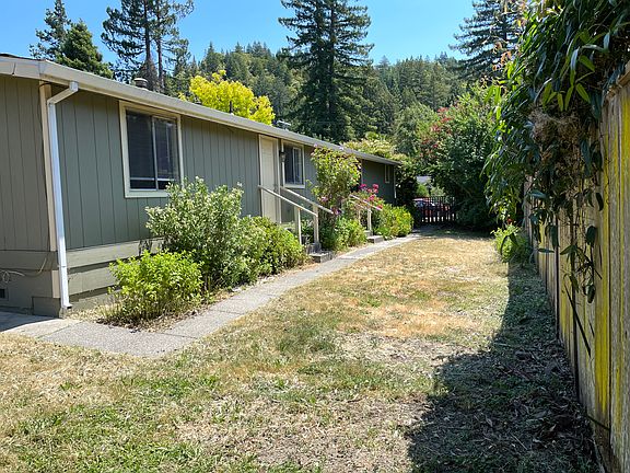 Exterior sunny landscaped yard area, walking distance to Guerneville School and five minutes from Armstrong Woods National park.