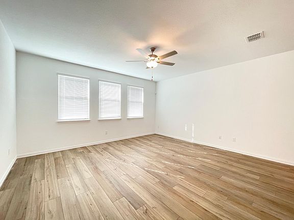 Beautiful BRAND NEW home in a highly sought after community Sendera Ranch subdivision with 4 bedrooms, 2 full bathrooms, formal dinning or study, and 2 car garage. Boasting an open flowing floor plan, vinyl plank floor throughout the hallway, living, dinning, kitchen, bathrooms, and bedrooms. No carpet at all! easy to clean! Two bedrooms are on the right side of entrance, one bedroom is on the other side of entrance. Master bedroom is located at the back. Large living area with big windows. Gourmet kitchen features modern look with white huge quartz island, gas stove, classic white cabinets, walk-in-pantry, breakfast nook. Master bathroom has a huge walk-in shower, dual sinks, build in towel cabinet, and walk-in closet. Enjoy relaxing under the covered patio, playing in the grassed yard, and enjoy all amenity that this community offers, swimming pool, playground, trails, parks, basketball court, soccer fields, baseball court, high ranked Northwest ISD, plus an elementary and Middle school are suited conveniently on site. Tenant will pay all utilities, including electricity, gas, water, sewer, renter insurance, lawn care. No smoking, pet deposit is $500 each pet, pet fee is $30 each pet monthly.