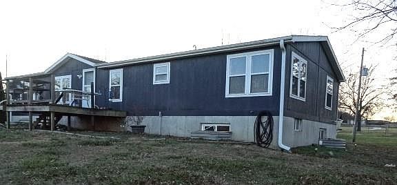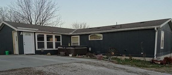 19.3 Acres on Blacktop 1/2 mile from I 49. Look what this property has to offer. 3 BR Manufactured home on a full concrete basement with 4 egress windows. Bsmt has a sump pump but is not needed. Sun Room/Family Room/Mud Room/Office/Sports Room is first room coming in from large concrete parking. This room has great views of the property & open 4' wide stairs to bsmt. Home comes with all appliances even the washer & dryer. Cozy Breakfast Room has views of the back side of the property. Dining Room or could be another living space off the kitchen/pass through bar. New LVP in Family Room and laundry area. Laundry Area has 3 closets for storage. Sun Room has a walk-in Pantry or Storage Room and Coat Storage. Master BR bath has tub and a ceramic tile walk-in shower. Basement is ready for you to finish with more bedrooms (Egress Windows in place) or more living space. It is dry but has a sump pump just in case. Outside is an older 1920's barn with silo. a 45'x80' Machine Shed with its own breaker box and Freeze Proof water hydrant. At one time it was set up for animals. Chicken house, another storage building, & another building on the property could be used for storage or converted to accommodate your needs. Might fix it up as Parents-In-Law Quarters. Property is fenced, cross fenced, 2 ponds, rich soil hay fields, lagoon for house. Deck on back side, NEW Pool, 30x30 treated wood Deck, Tiki Bar (read the disclosure for pool==lots of new updates. Property sets close to I 49 and would have the advantage if someone wanted to turn the older barn into a business, or storage for campers or boats or raise chickens, goats or cattle. Enough room for the kids horses and enough flat ground for an arena. Walnut & Pecan trees, large blackberry patch. If you like to live with a view, close to the Main Highway, close to town take time to come visit this retreat. Heat is Heat Pump with Emergency Propane Gas Backup. Very inexpensive heating and cooling bills. New outside Paint 2025