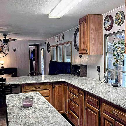 This ranch-style mobile home offers comfortable, peaceful living with: