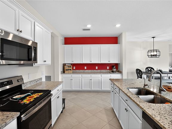 This stunning single-family residence offers 3+den spacious bedrooms, 3 bathrooms, and a 2-car garage—perfectly designed to suit your family’s lifestyle. Step inside and be impressed by the open layout and thoughtful upgrades throughout. The chef’s kitchen features gleaming granite countertops, stainless steel appliances, and tile flooring. Impact windows and doors provide both peace of mind and sweeping views of the sparkling lake just beyond your backyard. With sealed pavers, gutters, and lush tropical landscaping, this home exudes curb appeal from the moment you arrive. Additional upgrades include designer lighting, stylish ceiling fans, and a versatile garage with a built-in workbench for your hobbies or projects. The insulated garage door adds an extra layer of protection and efficiency.Life in Portico offers more than just a home—it’s a lifestyle. Enjoy resort-style amenities including tennis and pickleball courts, a modern fitness center, and a refreshing community pool. Weekly “No Cook Mondays” with food trucks, monthly cornhole tournaments, and scenic sidewalks make it easy to stay active, social, and connected with neighbors. Whether you’re unwinding on the screened lanai overlooking tranquil lake views or strolling through the community, every detail of this home has been designed for comfort and enjoyment. Don’t miss your chance to own this immaculate property in one of Fort Myers’ most desirable neighborhoods. Schedule your private showing today and start living the Florida lifestyle you’ve always dreamed of!
