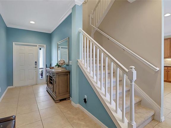 The best lot in the community! Imagine waking up to the mesmerizing sight of a sparkling fountain gracing a serene lake, just steps from your extended patio. This impeccably maintained townhome welcomes you to an oasis of comfort. Move-in ready with luxurious new carpeting and fresh paint. Downstairs, the spacious kitchen and open floor plan flows perfectly. A convenient half bath for guests & under-stair storage add practical touches. Upstairs, the master bedroom is a private sanctuary, boasting fountain views. Unwind in the large ensuite bathroom, complete with a walk-in closet. 2 spacious guest rooms with ample closet space ensure comfortable accommodations for guests. Convenient upstairs laundry room. Embrace the lifestyle offered by Summit Place: resort-style pool, basketball court, tennis/pickleball courts, & well-equipped gym. Enjoy the dry sauna, kids playground, and BBQs in the picnic area. 24-hour manned gate provides added security. Fiber optic cable and internet included in HOA fees. Coveted Vineyards/Oakridge/Barron Collier school zone ensures peace of mind. Experience the convenience of being near Founder's Square, Cameron Commons, Publix, and Winn-Dixie.