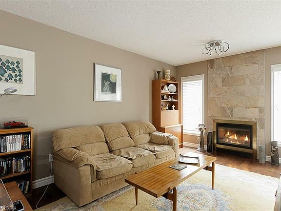 Welcome to Northdale Walk – your gateway to convenience and comfort! Situated just moments away from an array of amenities, including grocery stores, hardware shops, Masonville Mall, Stoney Creek Dog Park, scenic trails, and accessible public transit, and so much more! Step inside this inviting unit boasting three generously sized bedrooms and two and a half bathrooms. As you approach, be greeted by the charming façade adorned with red brick, an attached single-car garage, and a cozy covered front porch. The main floor welcomes you with the timeless elegance of hardwood flooring, enhanced by the inviting ambiance of a natural gas fireplace in the living area. Your spacious Eat-In Kitchen awaits, complete with ample cabinetry and countertops. Open the sliding patio doors to reveal a tranquil backyard patio, perfect for outdoor relaxation. For added convenience, a thoughtfully placed 2-piece bathroom completes this level. Venture upstairs to discover the allure of vaulted ceilings in your 3 good-sized bedrooms. Indulge in the luxury of your primary bedroom, featuring a walk-in closet and a rejuvenating 4-piece ensuite. An additional 4-piece bathroom on this level ensures comfort and functionality for all. Laundry facilities located in the basement alongside an unfinished space brimming with potential. Whether utilized for storage or envisioned as an additional living area, the rough-in plumbing provides flexibility, allowing for the possibility of adding a fourth bathroom to the unit. This home has been thoughtfully updated with notable features including a new furnace (2022), A/C unit (2017), Nest Thermostat, electric charger in the garage, modernized light fixtures, and refrigerator and stove (2023). With so much to offer, don't miss the opportunity to experience the charm and convenience of Northdale Walk firsthand.