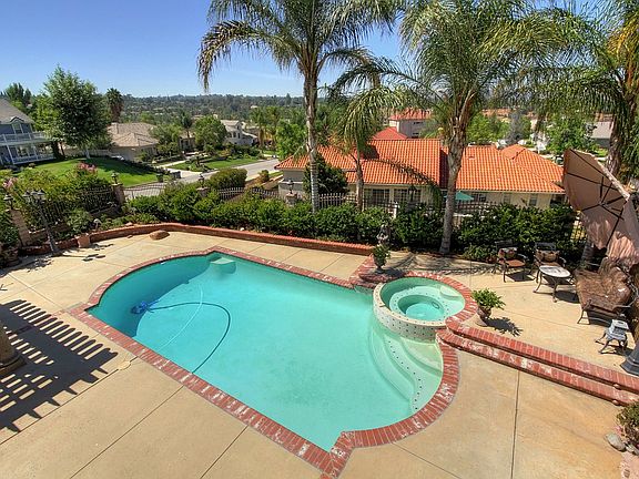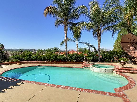Top of the line throughout ? gorgeous marble floors, fabulous kitchen open to great room and fantasy back yard, perfect for entertaining? One bedroom with office and bath downstairs?.Master suite enjoys private fireplace as well as large balcony with breathtaking views. Lush landscaping with fruit trees from apples, grapes, figs and avocados, front and back? Stunning pool, spa and outside kitchen entertaining area. 5 bedrooms, 4 baths, and 3,142 Square Feet.
