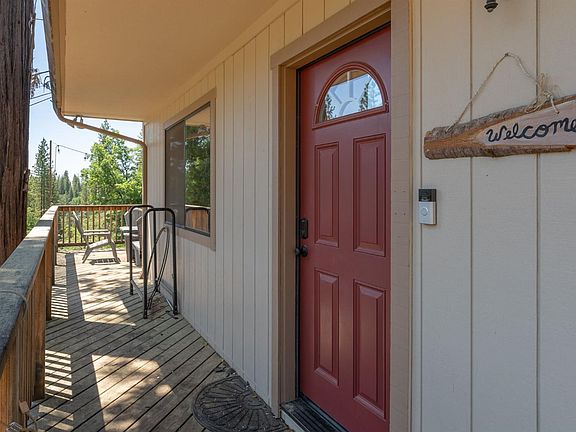 This charming Blue Lake Springs chalet is meticulously maintained and offers a delightful living experience. The home boasts abundant natural light, thanks to its bright and sunny ambiance. The dramatic great room features vaulted ceilings and cathedral windows, allowing for breathtaking tree-top views. The main level is home to the primary suite, providing convenience and ease of access. Upstairs, you will find two additional bedrooms and a bath, perfect for accommodating family or guests. The lower-level bonus room offers versatility, serving as an ideal space for a media room or a fun kids' bunk room. Both current and prior owner have taken great care of the property, with the interior and exterior being freshly painted in 2019. Infrastructure updates include rake window replacement in 2019, a new 40-year composition roof installed in 2013, and deck replacement in the same year. The flooring in the living area was recently replaced. With a gentle up-sloping driveway, winter access becomes hassle-free, ensuring you can easily enjoy those early fresh powder mornings at Bear Valley Winter Resort. As a homeowner, you'll have exclusive access to the private Snowflake Lodge Recreation Center, which offers amenities such as a private owner's restaurant, pool, swimming lake, tennis courts, and much more. Additionally, membership to Fly In Acres Lake is also included, adding to the array of recreational opportunities available. In summary, this well-maintained Blue Lake Springs chalet offers a bright and inviting living space, coupled with updates and access to an array of desirable amenities. It is a perfect retreat to enjoy the natural beauty and recreational offerings of the area. This home has active exterior video and audio surveillance.
