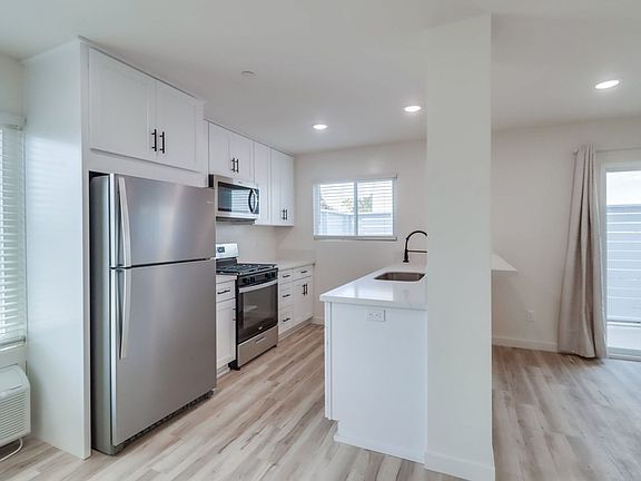 Experience elevated coastal living at Surf House Villas E, a newly renovated luxury apartment community in the heart of Pacific Beach, San Diego, offering a spacious two-bedroom, one-bathroom unit. Sophisticated interior finishes and thoughtfully designed amenities create an unrivaled resort-like living experience. This unit boasts an open-concept kitchen with brand-new stainless steel appliances and custom quartz counters. Luxury vinyl plank flooring throughout. Enjoy the convenience of a new full-size washer and dryer, and keep cool with a mini-split AC. Features include designer finishes, mirrored closet doors, dual-pane windows, and recessed lighting. Step outside to a large private patio off the living area and an additional private patio off one of the bedrooms. This gated community offers the perfect blend of comfort and style, making Surf House Villas E the ideal place to call home.