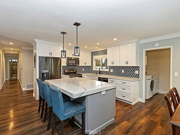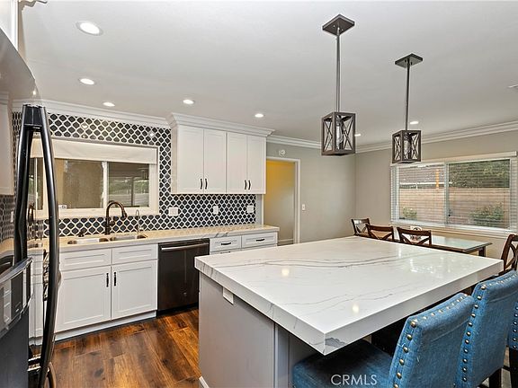 Don't miss out on this stunning single-story Ranch style pool home located in the sought-after community of Canyon Crest! This home boasts of a fully paid solar panel system, elegant crown molding, recessed lighting, a cozy fireplace in the living room, gorgeous laminate flooring, ceiling fans, convenient indoor laundry with ample storage, a recently renovated eat-in kitchen with a breakfast bar, stone countertops with stainless steel appliances, and a new water heater. The spacious bedrooms all offer a generous layout, while the master bathroom showcases a walk-in shower and the hall bathroom features a tub and shower combination. Step outside to the entertainer's dream backyard with a saltwater pool and spa, perfect for relaxing or hosting gatherings. Enjoy watching the sunset from the covered patio, and take advantage of the double-sided RV parking for all your vehicles and toys. This home also includes a newer upgraded HVAC system and pool equipment.