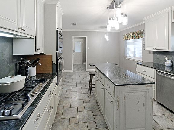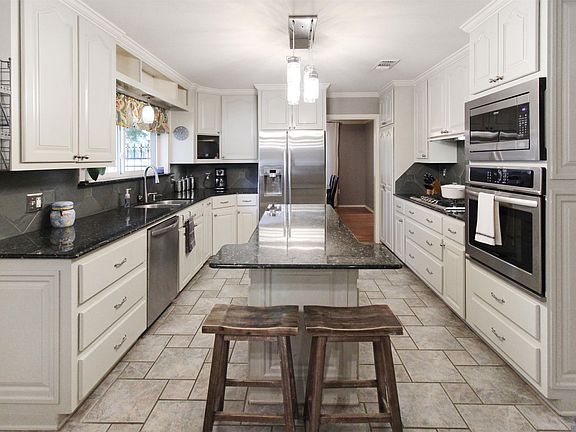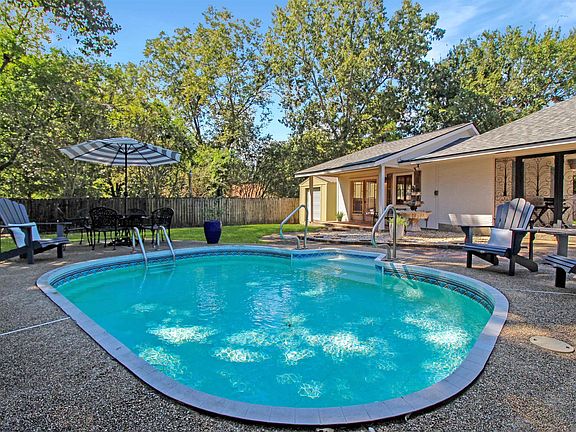 Beautiful 4 Bedroom 2.5 Bath home with POOL & approx 400sqft MANCAVE, gameroom, POOL HOUSE, Fitness Room or more! FRESHLY PAINTED white brick home with GAS LATERNS at front entry and gated driveway. Wonderful Kitchen features SLAB GRANITE countertops, stainless appliances including 5 burner GAS COOKTOP and lots of cabinets. Nice Den with FIREPLACE and great built-ins. Generously sized Master Suite has CUSTON WALK-IN SHOWER, soaking tub, dual sinks and large WALK-IN CLOSET. Cocktail Pool, rear porch, extended patio , BONUS SOACE and separate storage/workshop makes for a great outdoor space!!