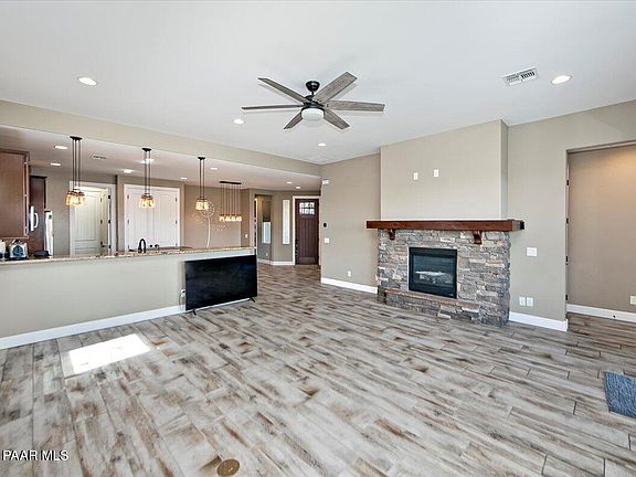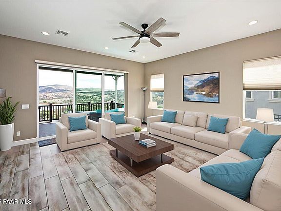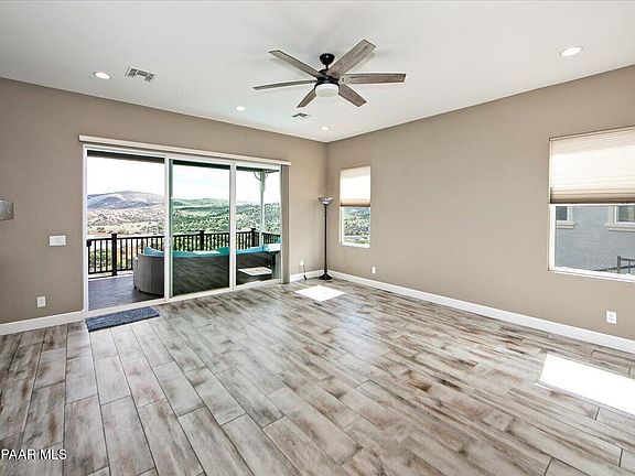 Spacious Prescott Lakes home (over 3000 sq. ft): 4-bed+1 (office or guest bd), gorgeous views, one level living with two floors, hot tub/spa, storage, fenced yard, spacious versatile downstairs room for rec/hobby/family/game or whatever you need; downstairs area includes 2 bedrooms and a bath. Main level has 2 bedrooms + 3rd bed or office. Rec/Bonus room wired with ceiling flush mounted surround sound speakers. Step out from downstairs room to patio with spa/hot tub. Spacious kitchen with view windows out to a panorama scene....all in charming Astoria gated community in Prescott Lakes. The subdivision athletic club has indoor and outdoor swimming, tennis, pickleball and gym. 3 minutes from championship golf at the pristine Club at Prescott Lakes Golf Course! Original owner. Best views of the 4th of July Fireworks from Watson Lake. Watch the show from your hot tub! Easy access to HWY 89 or to shopping area at Willow Creek and Sandretto, 5-10 min away. Additionally, speedy access to Veterans Admin as well as downtown Prescott. This offering has it all, a charmer in a quaint neighborhood, well located at excellent pricing. Don't miss it.