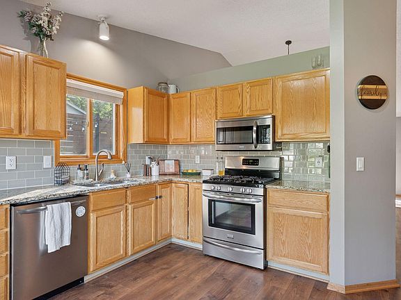 Spacious four-level home in the Pinewood Estate neighborhood! Vaulted main level with high ceilings and flowing floorplan. Bright entryway with coat closet and garage access. Modern kitchen with quartz countertops, oak cabinets, stainless steel appliances, tile backsplash, a bay window and amazing natural light. Open dining room with a sliding glass door to the side deck for easy entertaining and lovely outdoor meals. Cozy living room with peaceful backyard views. The upper level offers three bedrooms on the same level. You’ll love the primary suite with its private ¾ bathroom and double closet. Two more adorable bedrooms and a full bathroom complete the upper level. The lower level includes a large family room with gas fireplace and built-in bookshelves and a half bathroom. In the basement, you’ll find a finished home office that could become a fourth bedroom with the addition of an egress window. The unfinished laundry room includes storage shelving and new mechanicals (Furnace, A/C, and water heater replaced in 2023). The attached, heated, and insulated three car garage is sure to improve your winter. And the Wi-Fi controlled irrigation system will make your summers a breeze. Plus, the fully fenced backyard with wooded land behind will be your new favorite spot! Great location with shopping, dining, schools, and many neighborhood amenities within a five minute drive or less. Plus Sunshine Park is just a few doors down!