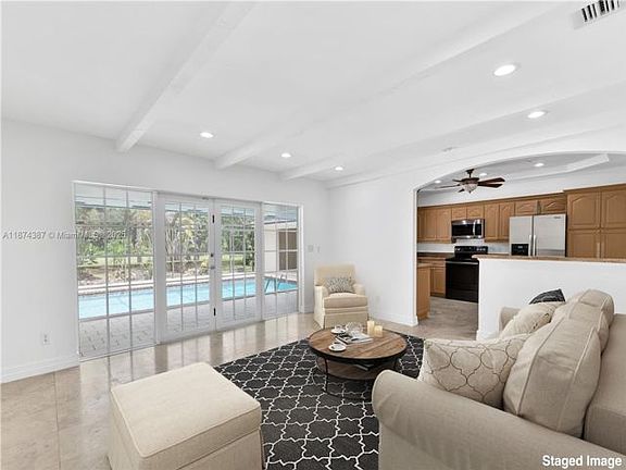 This corner residence sits on Old Cutler Road and 148th Street on an expansive 65,000+ sq ft lot. Offering four bedrooms and two bathrooms, the home features a spacious layout with formal living and dining rooms, plus a family room just off the kitchen. Step outside to a large screened pool and tiled patio perfect for entertaining. The garage is now a storage room and serves as the laundry area. Located in one of Miami's top school districts, the home is just minutes from Deering Estate, Pinecrest Gardens, and Matheson Hammock Park. Landscape and pool maintenance are included in the rental price. Easy to show!)