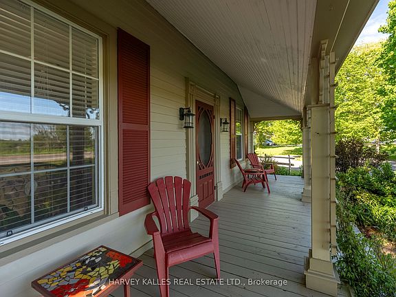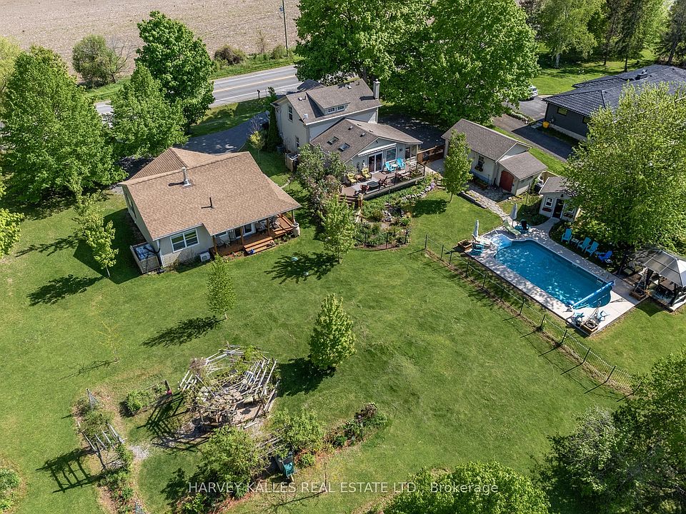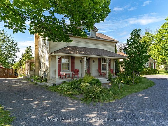 Two great houses on a beautiful property in Bloomfield, Prince Edward County. This home has been designed with friends and family at its centre. A secondary house provides extra living space, complemented by a backyard pool oasis featuring a pool house, gazebo, expansive decks, and a playhouse complete with twinkle lights and patio seating nestled among many colourful flower beds. The main house is a two-bedroom, two-bathroom century home that has been thoughtfully updated and renovated throughout. It retains its original character, including wide plank floors, deep baseboards, a large family room, a well-designed screened porch to conveniently catch coats and boots, and a charming front porch. The updated kitchen and living area open onto a covered porch and a patio with a walkout to the deck overlooking the pool and gardens, extending the living space during the warmer seasons. The secondary house was created with ease and accessibility in mind. It is all on one level, with extra storage and a wraparound deck. Inside, you'll find two bedrooms and a full bathroom, along with an open-concept kitchen, dining, and living area with a patio door walkout to the backyard. The oversized single garage includes an attached garden shed-perfect for tending to the perennial gardens-and provides privacy for the in-ground pool. The property is bordered by mature trees and overlooks farm fields, offering an ideal setting just outside of town. Located only a 2 minute drive to Bloomfield Main Street, 10 minutes to Wellington, 12 minutes to downtown Picton, and within a short walk to the Millennium Trail.