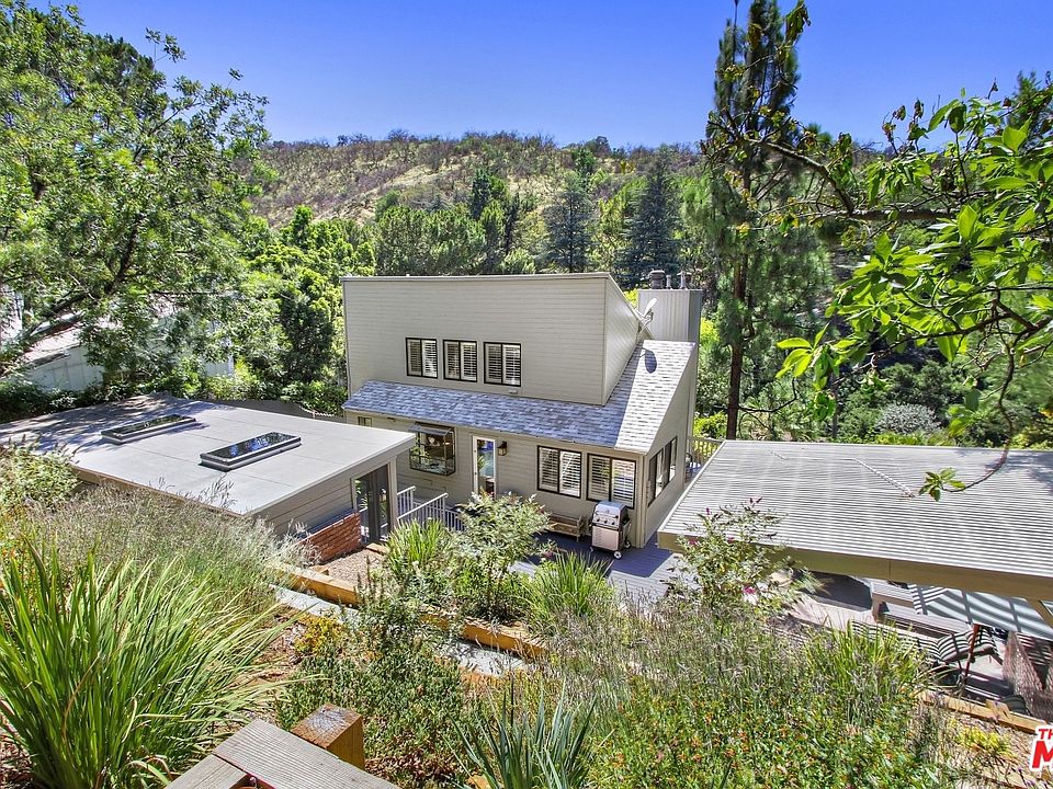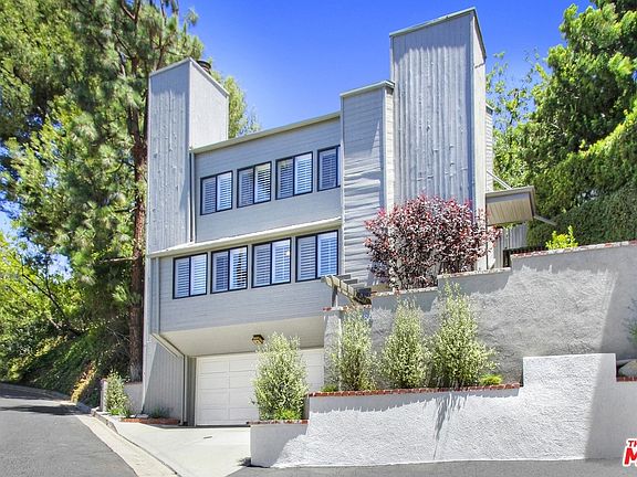Heaven in the hills. Superbly maintained, this private and peaceful three level home has a treehouse-like indoor/outdoor feel. This two+loft+three bath home features a professionally landscaped entertainers yard with lap pool, spa, fountains, and peaceful pool house. Inside, the second floor living space has soaring ceilings and is both huge and cozy. Other features are the dining room, fp, powder room and access to a wonderful wraparound deck. Remodeled kitchen and baths include Caesarstone counter tops, stainless steel appliances and custom vanities. The large airy master has a fireplace, ensuite bath with jetted tub and walk-in closet. Another full bath is adjacent to the sunny second bedroom. The loft with its large closet can be re-purposed as an office, den or 3rd bedroom. You will love gazing out the wall of windows to the hills,terraced garden,tree tops and twinkling city lights beyond.
