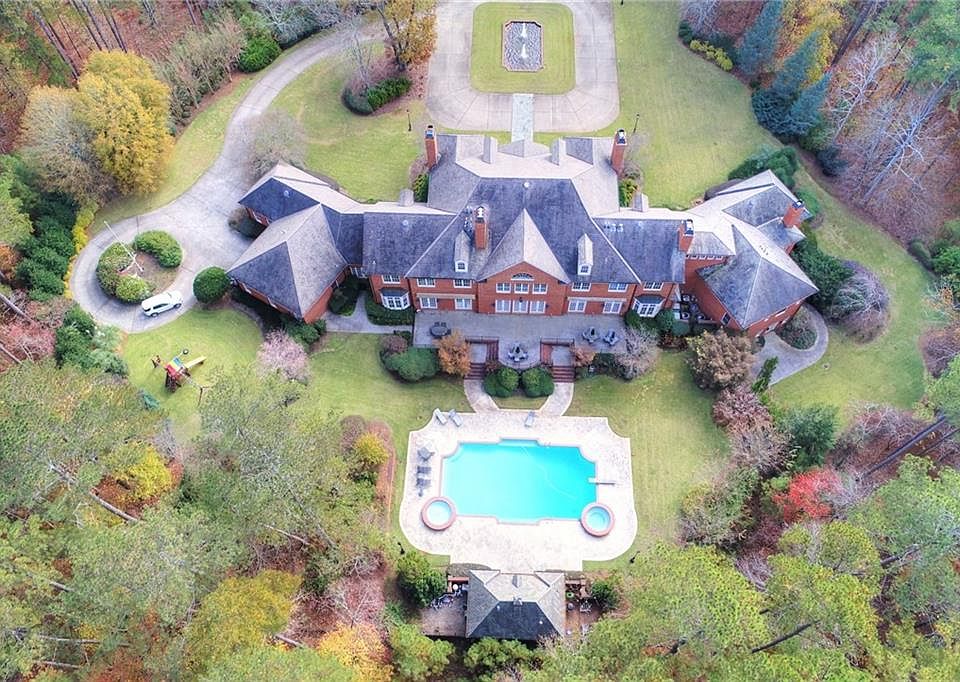 Within the esteemed enclave of North Valley and heart of Milton, lies a masterpiece of luxury estate living, sprawling across an impressive expanse of +/- 10 acres. This Georgian all-brick mansion, reminiscent of the Great Gatsby, is a monument to architectural finesse and unmatched refinement. Spanning more than 12,000 square feet, the estate presents an assemblage of magnificent living and entertaining spaces, crowned with 12-foot high ceilings, the highest quality of millwork and design, an illustrious slate roof, genuine copper gutters, and an elevator to gracefully ascend through its storied levels. Designed for the consummate host, the estate boasts a 54-foot swimming pool, complemented by two spas and a pool house with a kitchenette, setting the stage for gatherings of unmatched elegance and joy. At the heart of this splendid domain is a gourmet kitchen, a chef's dream, outfitted with triple islands, four dishwashers, four ovens, and a walk-in pantry, 2 fully equipped bar areas, poised to accommodate the most lavish of feasts and intimate gatherings alike. Inside guests are greeted by a dual staircase, a dome lighted ceiling, marble-tiled entryway, six fireplaces and an exquisite office space/cigar lounge, adorned with illuminated bookcases. Majestic living quarters, featuring a master suite on main, four grand bedrooms up, each with ensuite baths and walk-in closets, alongside a basement area exquisitely finished with a sauna, spa, and guest quarters. Outside you’ll find magnificently manicured grounds that promise solitude and a picturesque setting for outdoor entertaining. Within a locale that marries the tranquility of rural grandeur with the convenience of proximity to Milton and Alpharetta’s plethora of amenities, this estate also features a four-car garage and ample additional parking, emphasizing the utmost in construction quality with a lens focused firmly on luxury and seclusion. This estate stands as an invitation to those of discerning taste, seeking a residence that not only promises, but delivers an unparalleled lifestyle of elegance and exclusivity.
